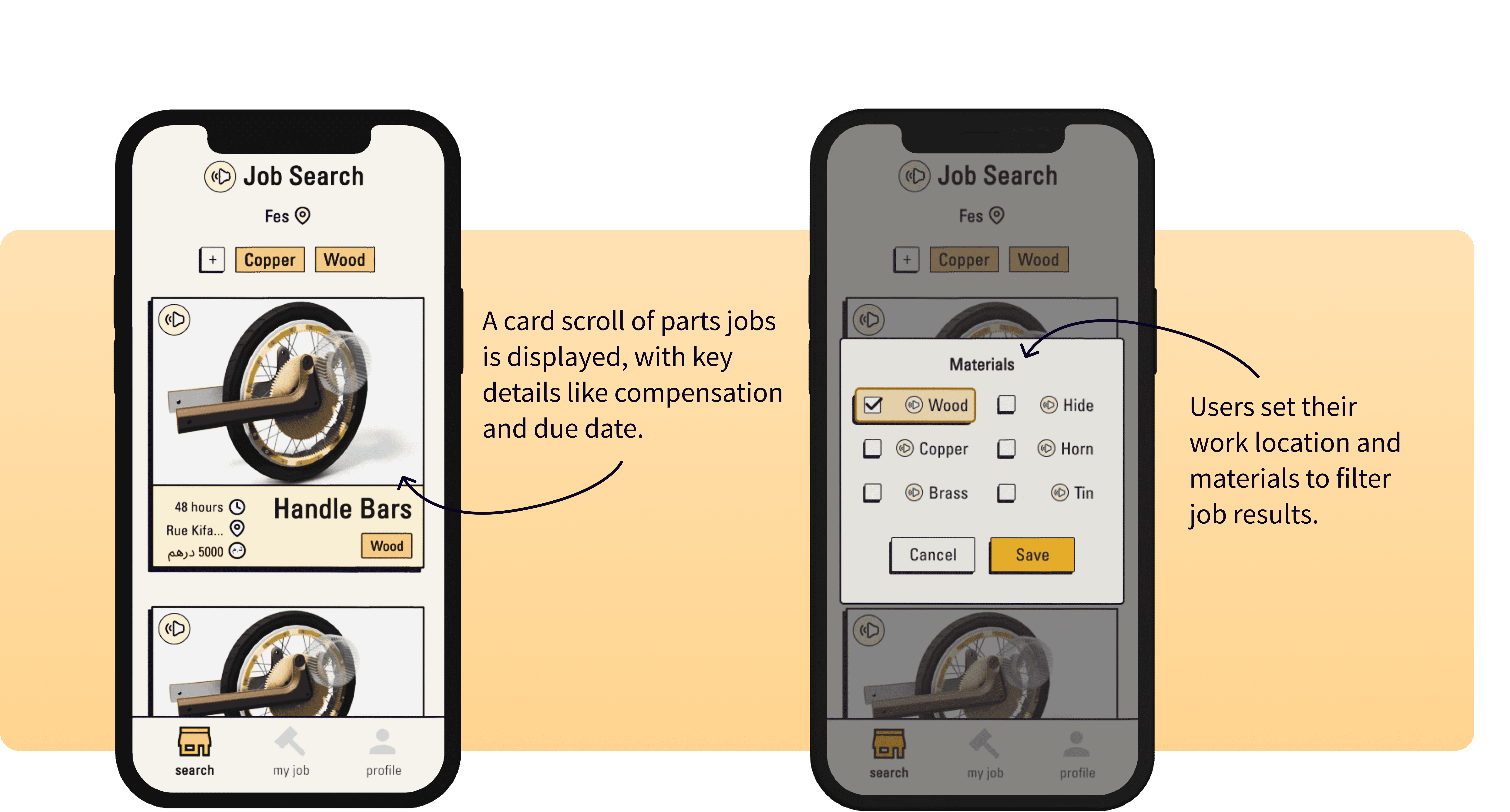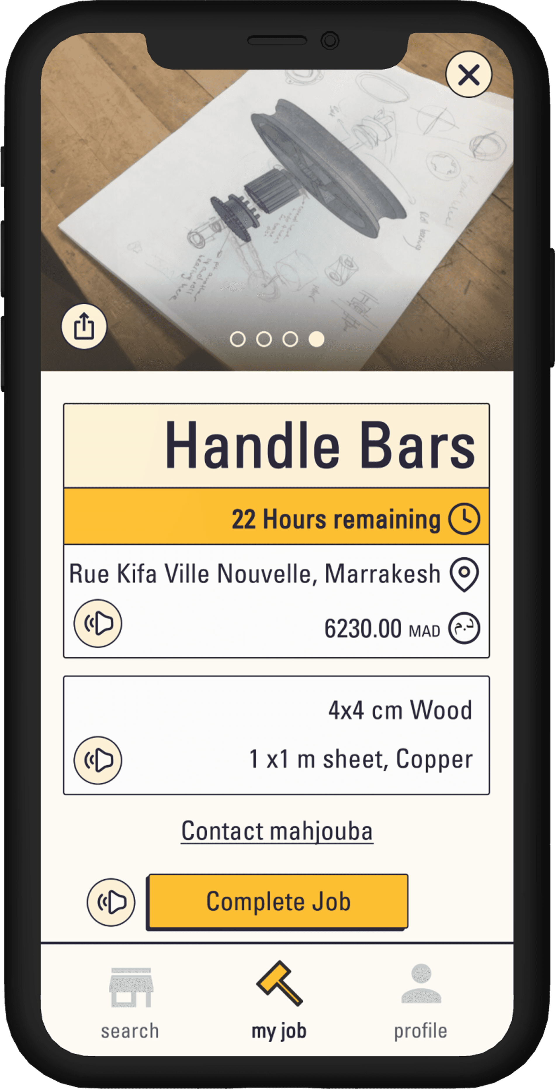 We designed a mobile app that connects Moroccan craftspeople to the Mahjouba Initiative's electric motorcycle project.