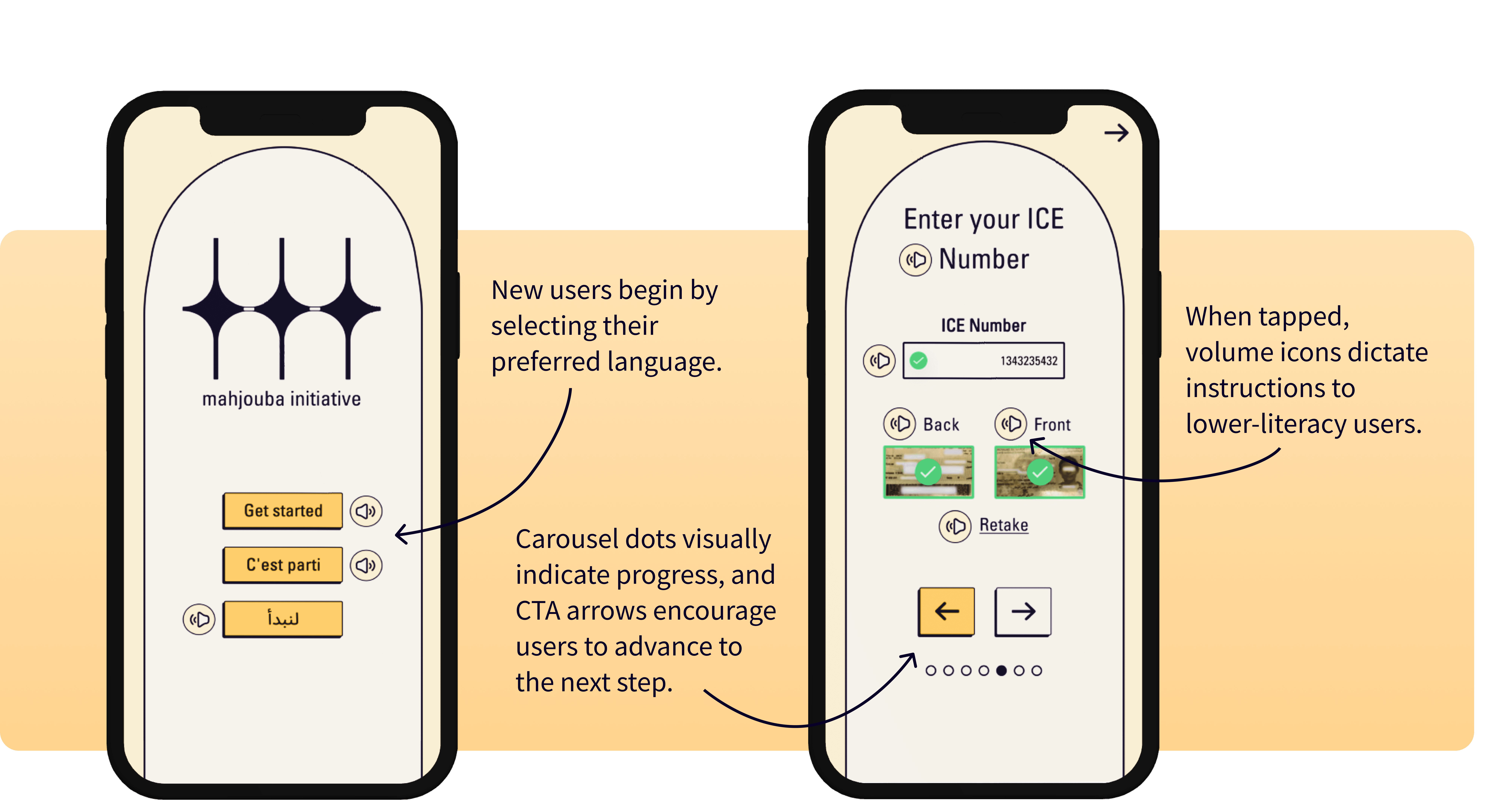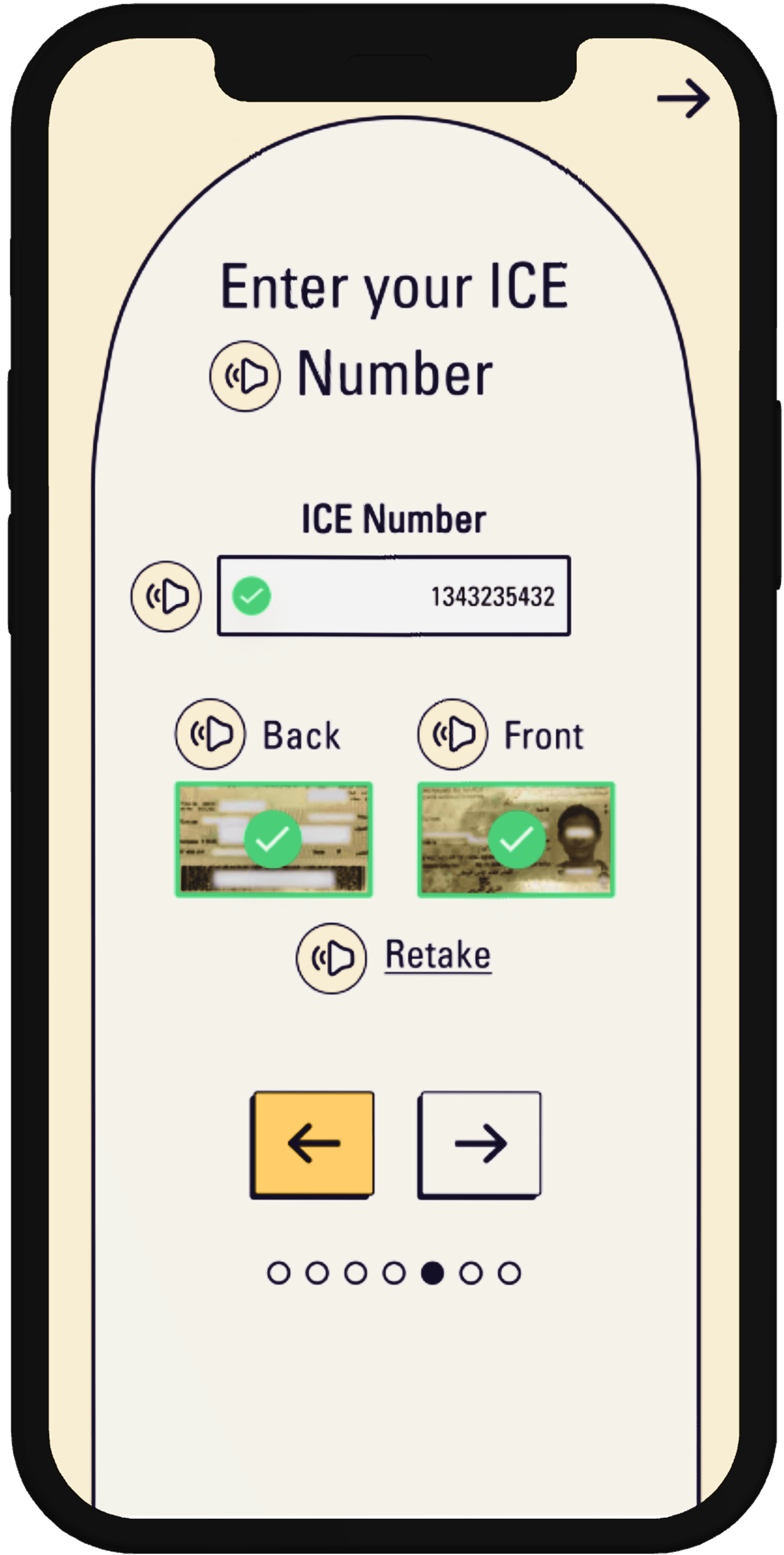 We refined the onboarding flow to begin with language selection, creating a more welcoming and intuitive opening interaction for non-English speakers. After conferring with our developers, we also introduced real-time visual feedback for ID photo uploads, validating image quality for users before moving forward.
