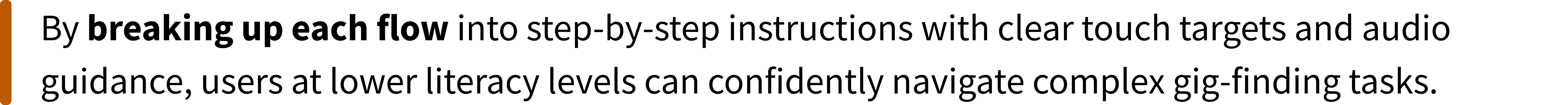 We created low-fidelity wireframes in Figma that illustrated our two main user flows: onboarding and job selection, while keeping our key constraints of multilingual-friendly, accessible design in mind. While waiting on Arabic translations of our text, we initially created designs in English.
